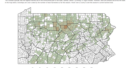 Pa Bear Harvest Map – In 2023, a total of 206,124 black bear hunters were registered in the Commonwealth, which marked the fifth year in a row that bear license sales topped 200,000. For reference, in 2003 Pa. had . The archery bear season added another 680, while the muzzleloader/special firearms bear season harvest was 536. Pennsylvania hunters recorded their all-time best bear season in 2019, when they .