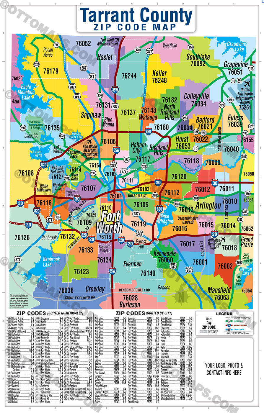 Tarrant County, TX Zip Code Map โ Otto Maps